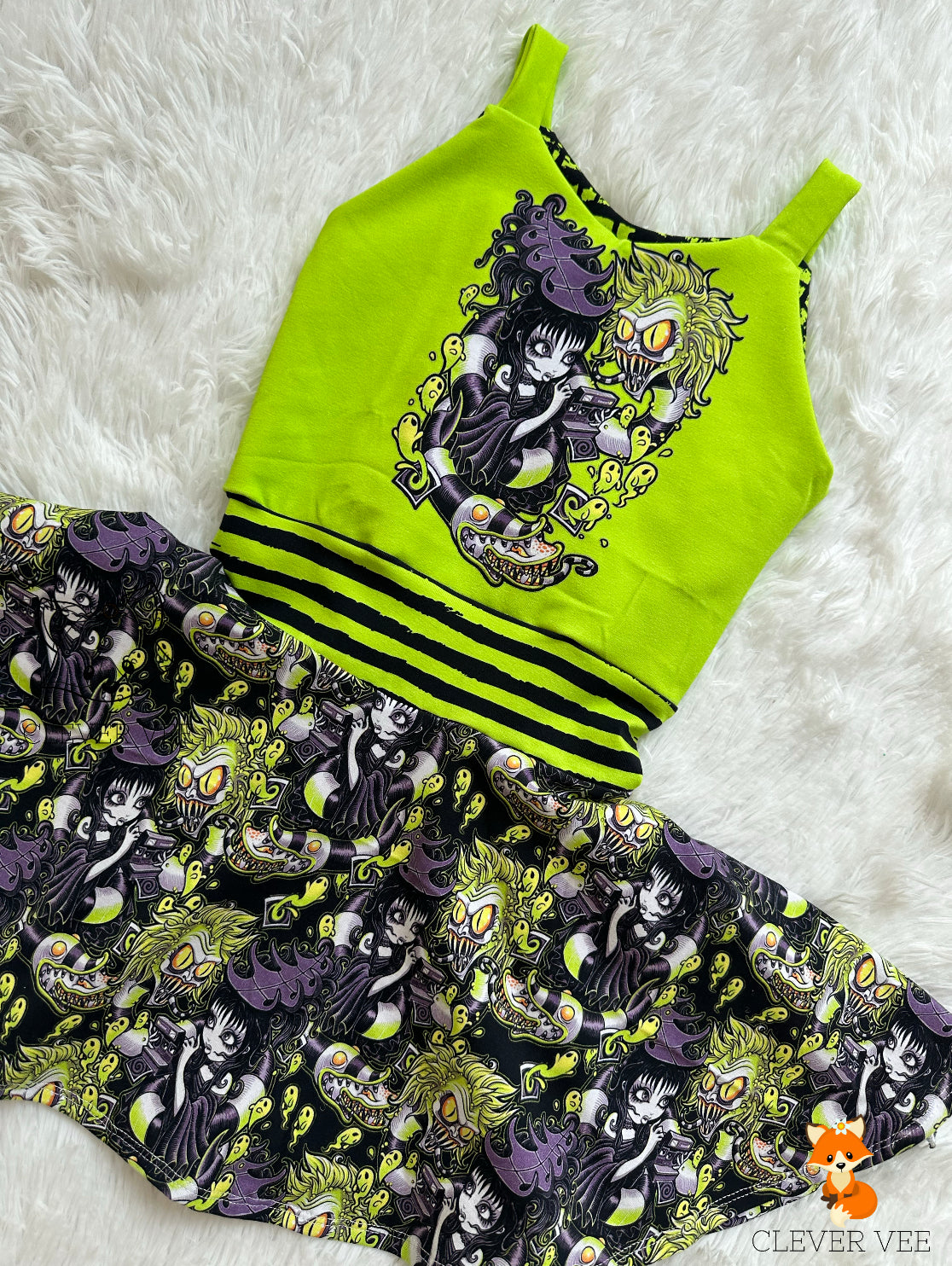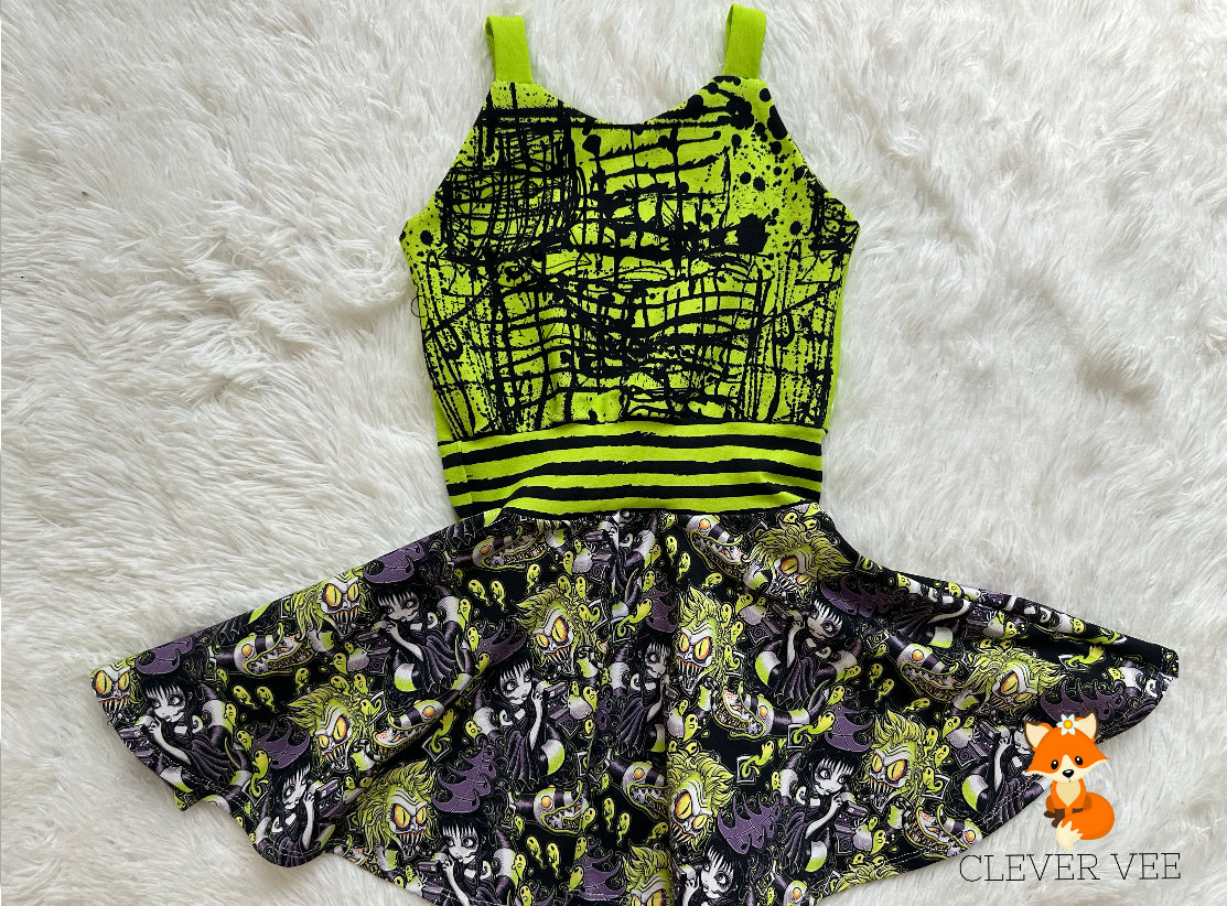 This dress can be worn both front and back. The back side has a different print for the top of the dress.